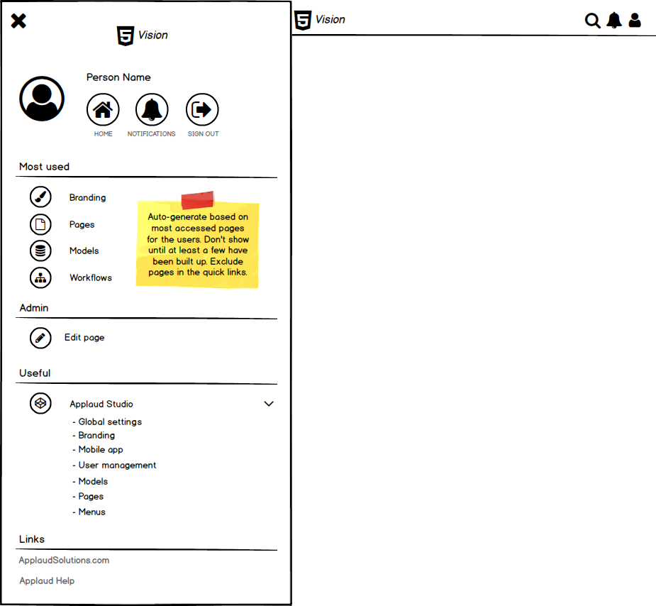 I want to see a 'Most used' menu item in my burger bar based on items I use the most, so I can quickly access services I use more frequently.