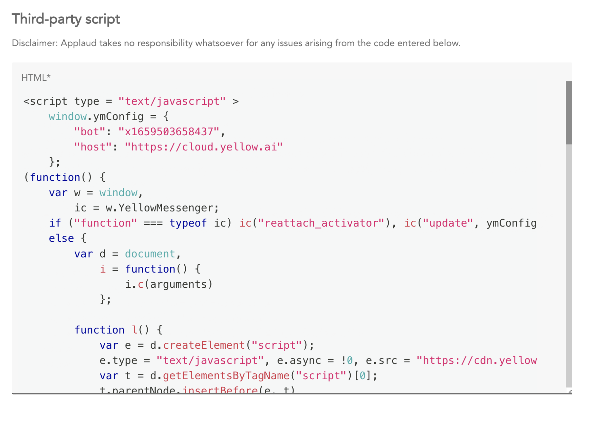 Ability to add a <script> tag to the head so that I can display certain 3rd-party content within Applaud