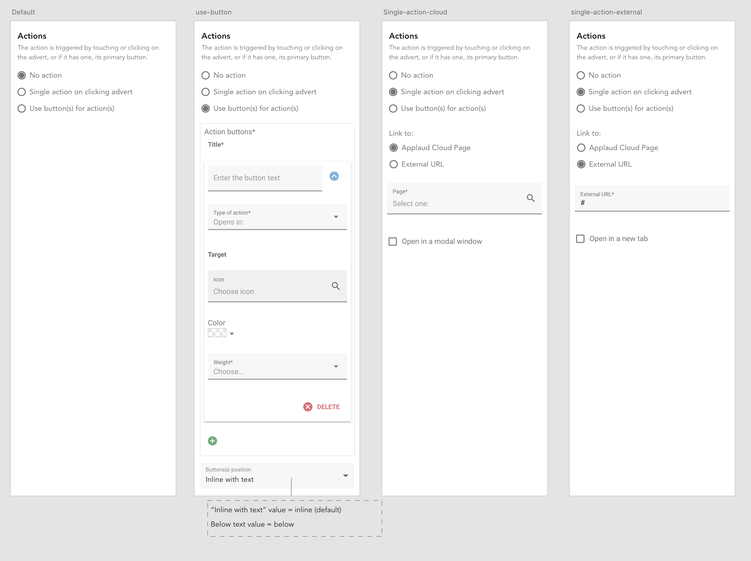 The ability to have a second button within an advert, control the position, and the colour & weight of each button. For example, you maybe have an advert block encouraging teams to take a break - with a bold green primary action button "book leave" and a second, outline button with an action like "Explore discounts"